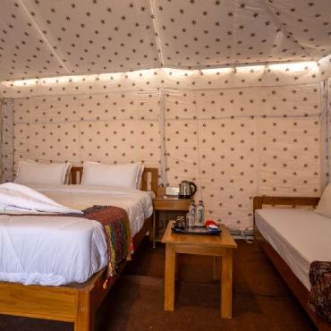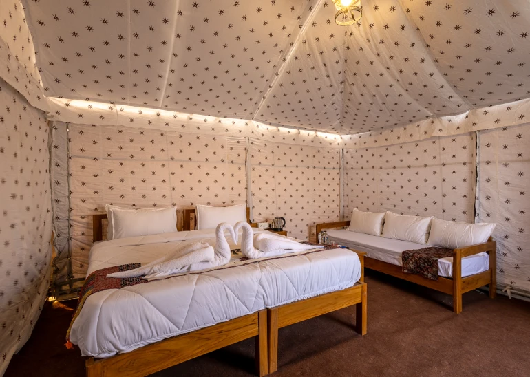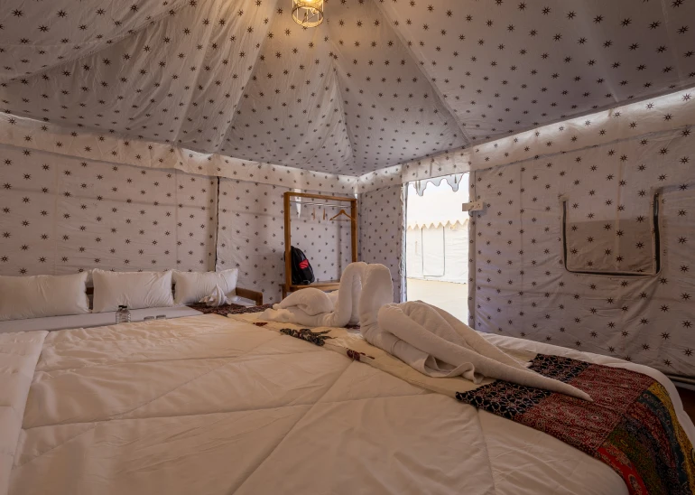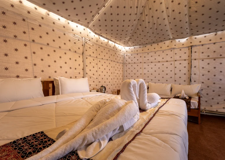 Discover a world where luxury meets the raw beauty of nature at Rann Tent Resort. Set against the backdrop of the vast and enchanting Rann of Kutch, our resort offers an unparalleled desert escape that matches opulence with the serene simplicity of desert life. As you arrive, you'll be greeted by our elegantly designed tents, which seamlessly blend traditional charm with modern comforts. Each tent provides a private sanctuary with private space for you and your loved ones, ensuring a stay that is as restful as it is memorable.